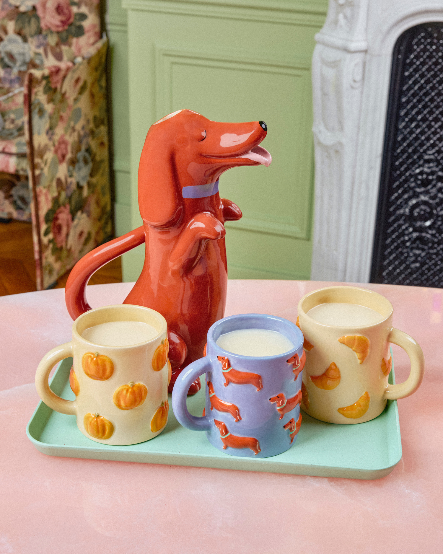 Did you know? Coucou Suzette started with ceramics! So it was about time we go back to basics and dress up our interiors the same way we dress ourselves: with Juliette's creations of course. A carafe and three original mugs for a touch of fun even in our kitchens!