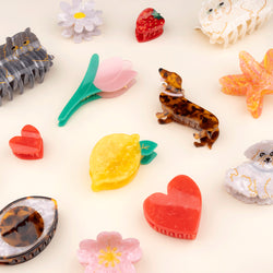 Our cellulose acetate hair accessories, combs, rulers, pocket mirrors and earring pendants are made in factories in Eastern China.