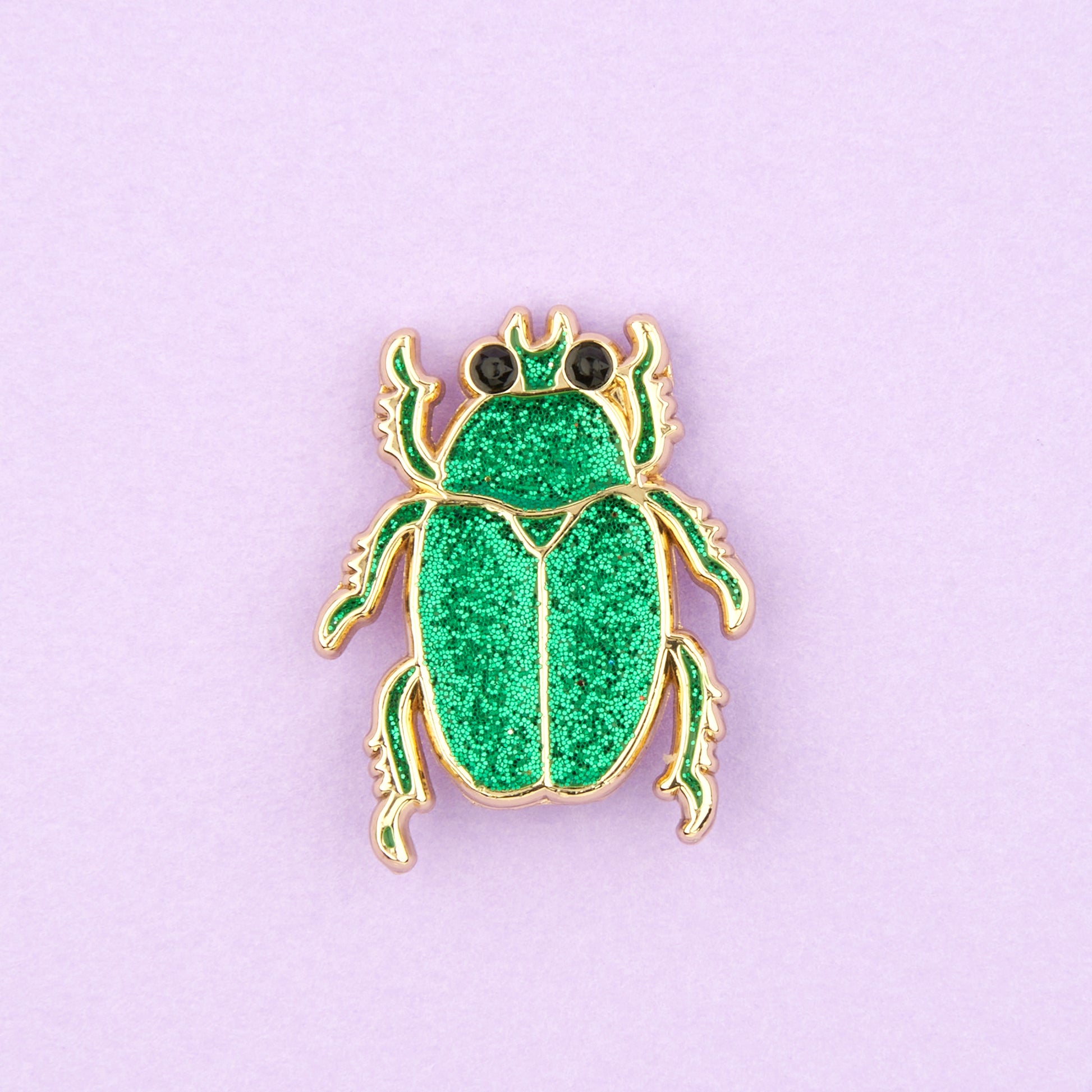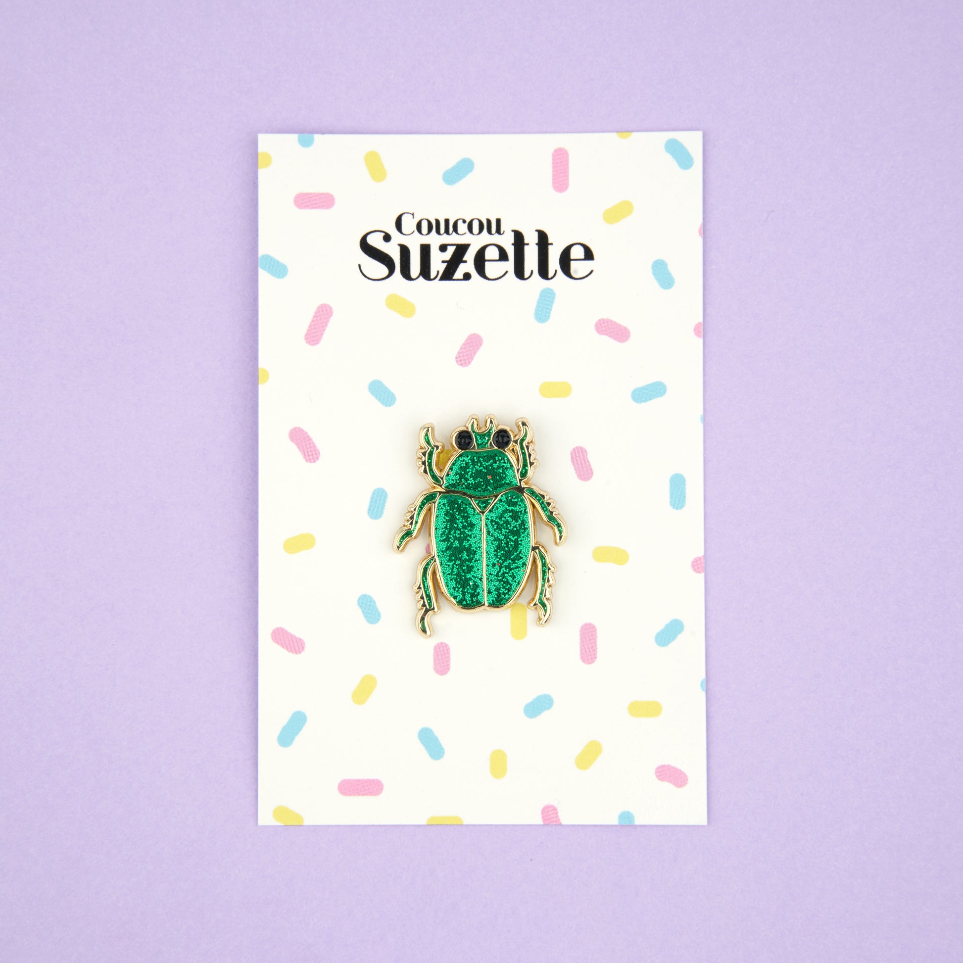 The most beautiful beetle, straight out of a fairy tale! Look at them, all sprinkled with glitter to mimic the sublime iridescent colors of real life, with the added bonus of pretty rhinestone eyes for an ember look. This jewel pin clips cheerfully onto all our spring outfits.