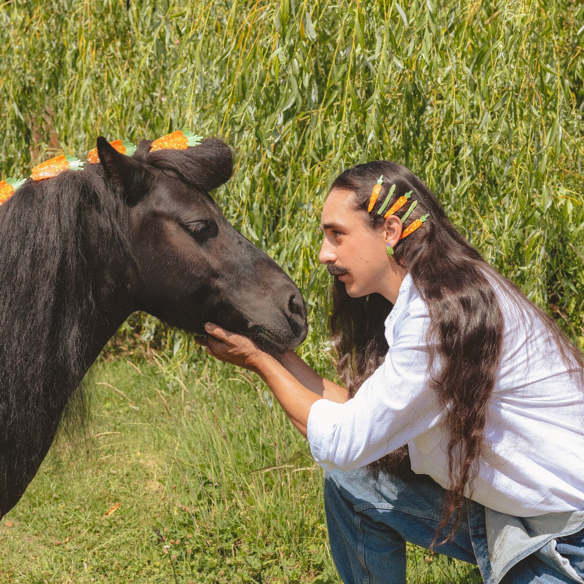 For a vibrant splash of color and a dose of fun, choose the carrot hair barrette! We’re obsessed with this delightfully quirky accessory that happily nestles into all hair types. Pair it with the asparagus hair clip for an irresistibly crunchy look!