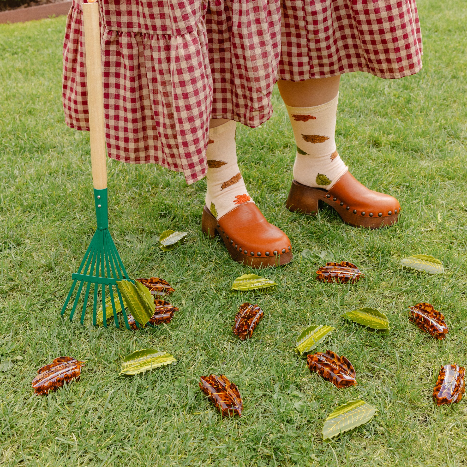 Our favorite patterned socks for fall: these little beauties covered in seasonal leaves. Green, brown or orange, but all glittered to perfection! All on a cream background, so as not to steal the show.