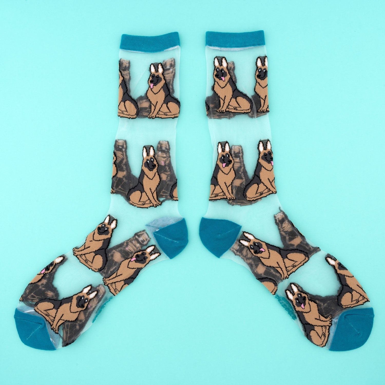 Pretty patterned sheer socks, with blue details, for an extra touch of color.