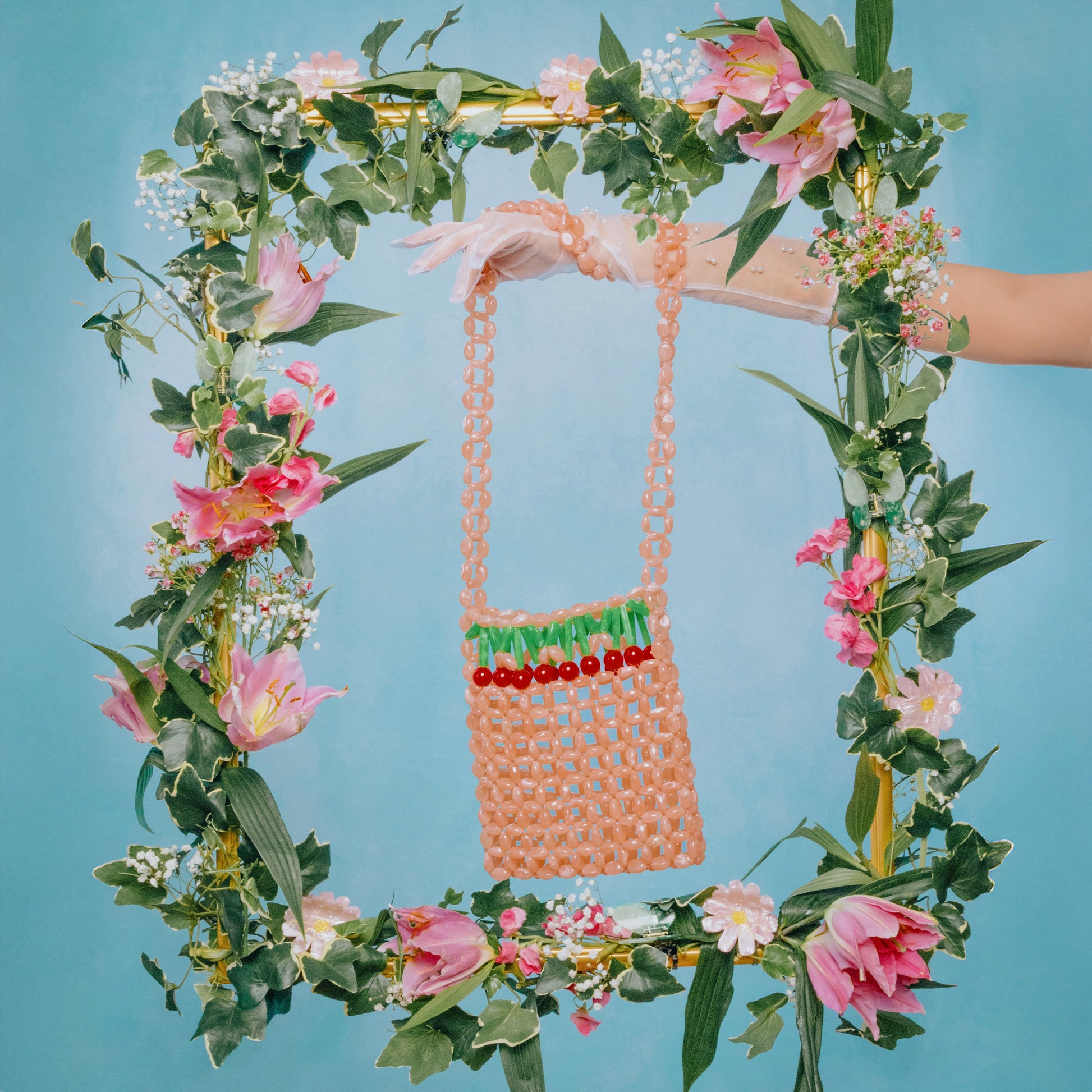 The latest addition to the family of our beloved beaded bags: the cherry bag! We love every aspect of this original creation: the retro look, the fruity motif, the bright cherry colors, and that head-turning pale pink background... The masterpiece that's been missing from our wardrobe.