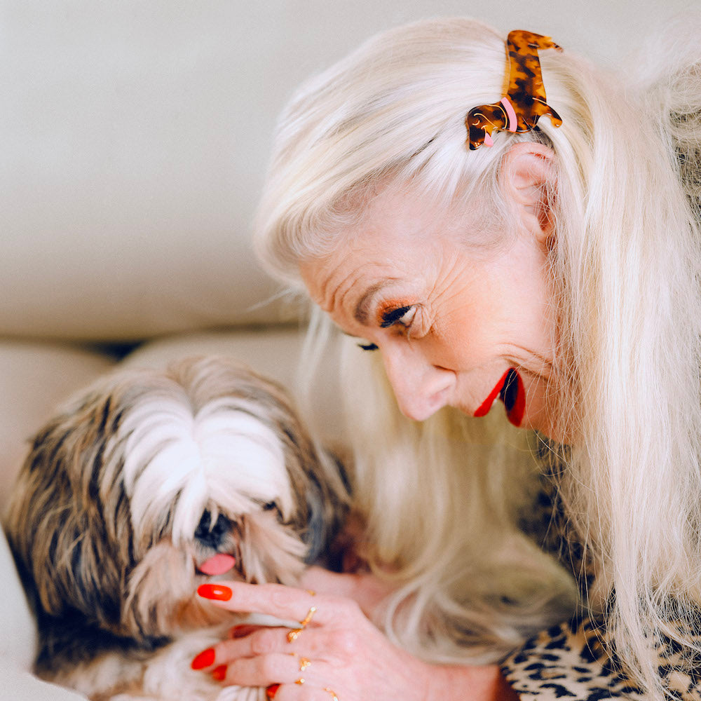 Our beloved Dachshund in a 90’s hair clip version! This accessory is such a sweet memory, for both us and our moms who were obsessed with it. Here it is back in the game with our favorite dog on it. The perfect barrette for a half-up half-down hairstyle.