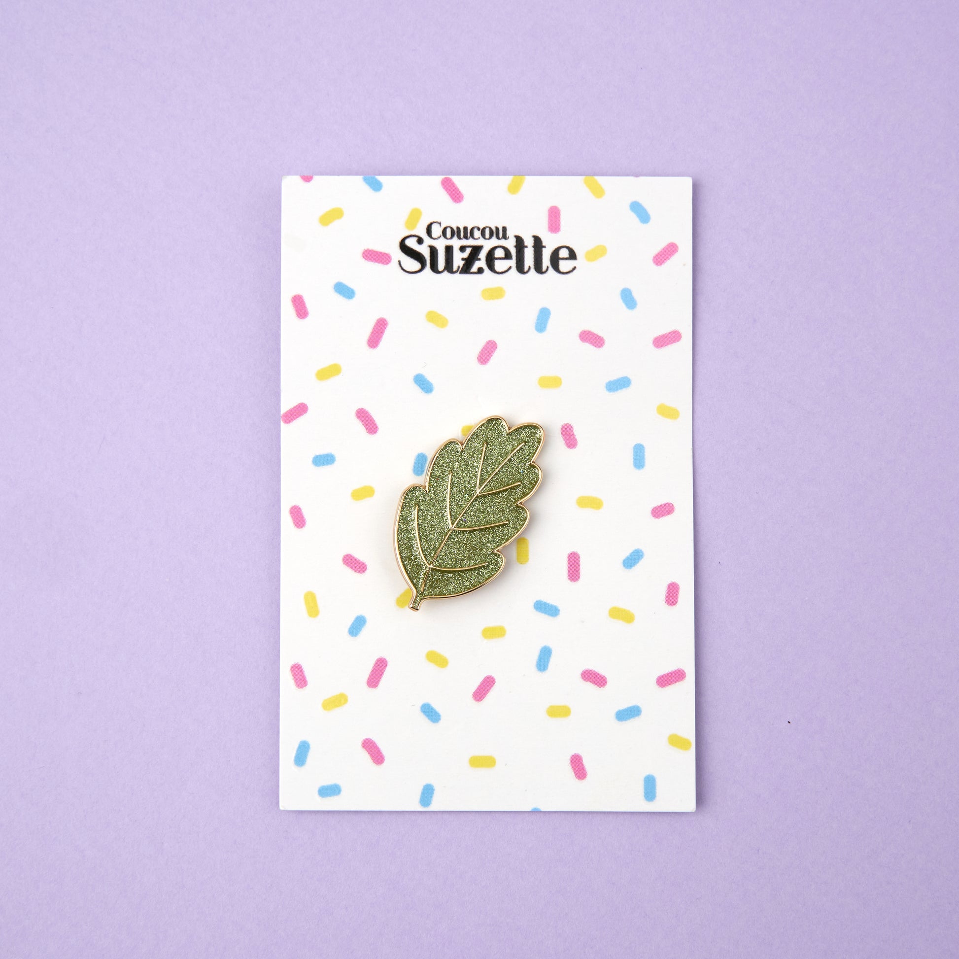 Jewel pins for every season! During fall, we go for a simple, effective leaf pin, colored with beautiful green sequins and decorated with pretty gold details.