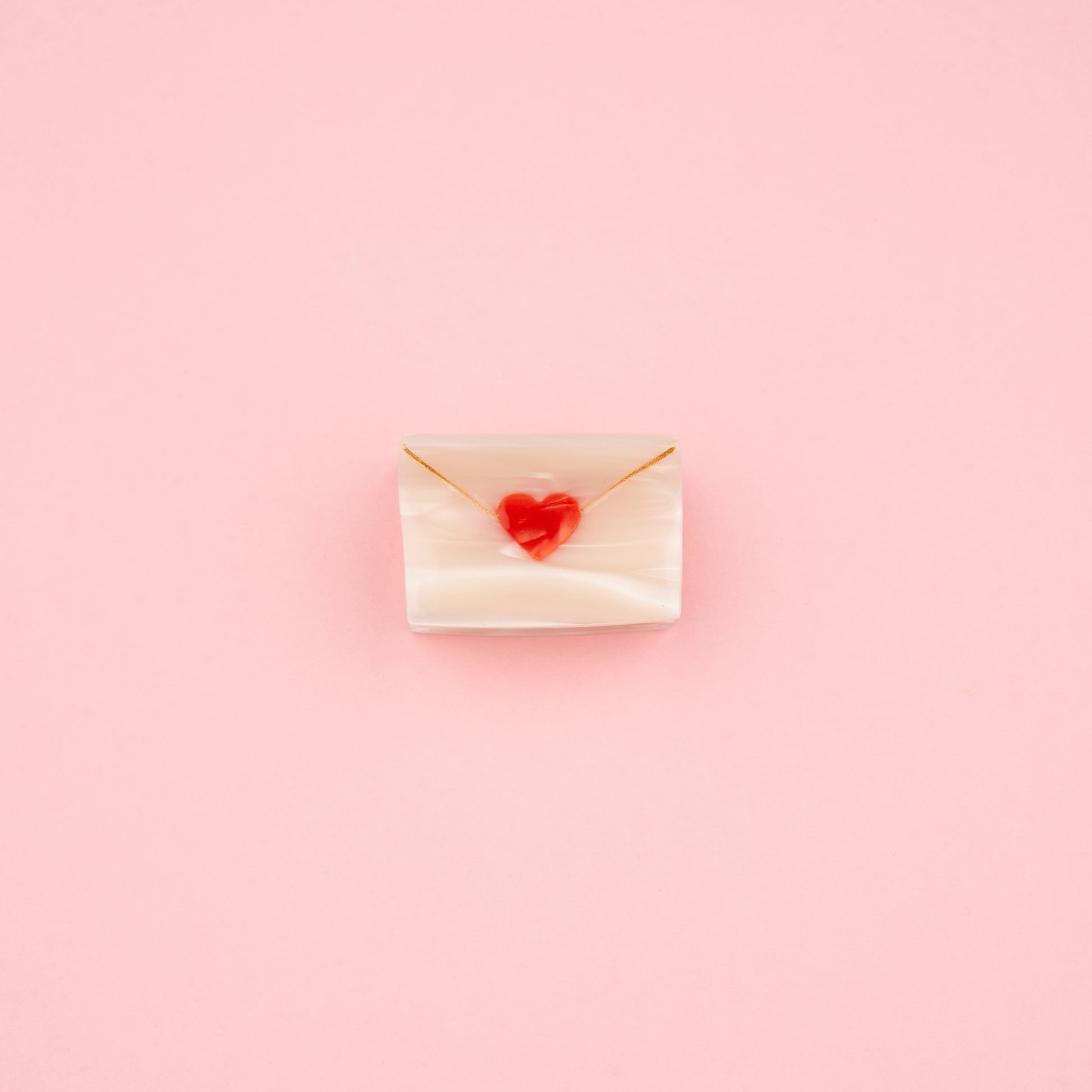 The mail has arrived! And among the letters, this little pearly envelope sealed with a red heart… Who could it be this time? While waiting to read their fiery declarations, we wear this mini hair clip with our prettiest half-up hairstyles.