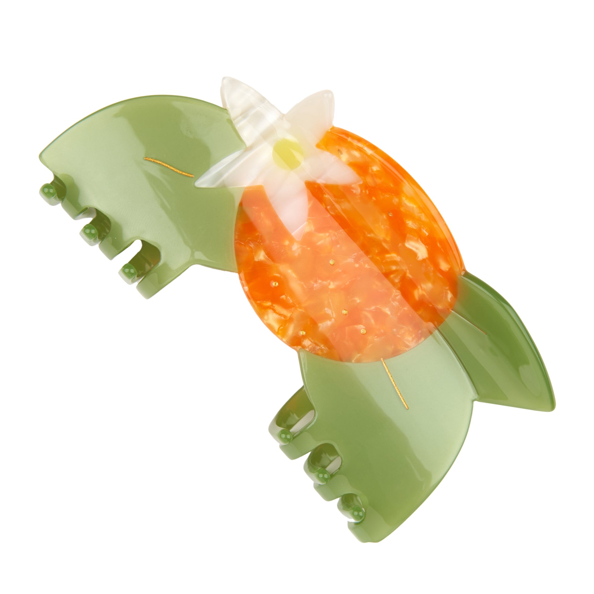 This one’s bound to bring joy to those with luscious manes: the orange blossom hair claw! With its wide leaves and blooming orange, it grips long, thick hair like no other. A unique accessory that brings Mother Nature into every hairstyle.