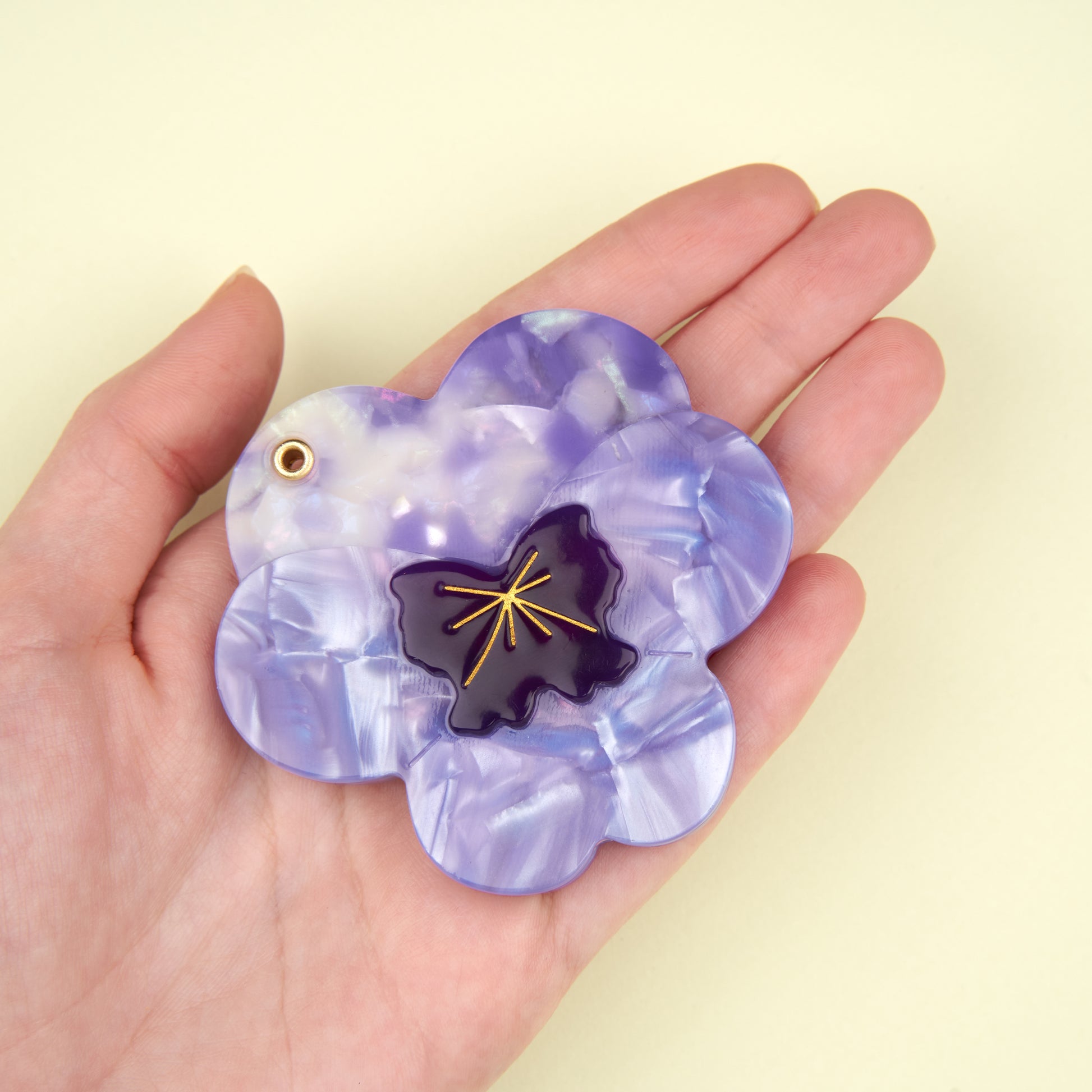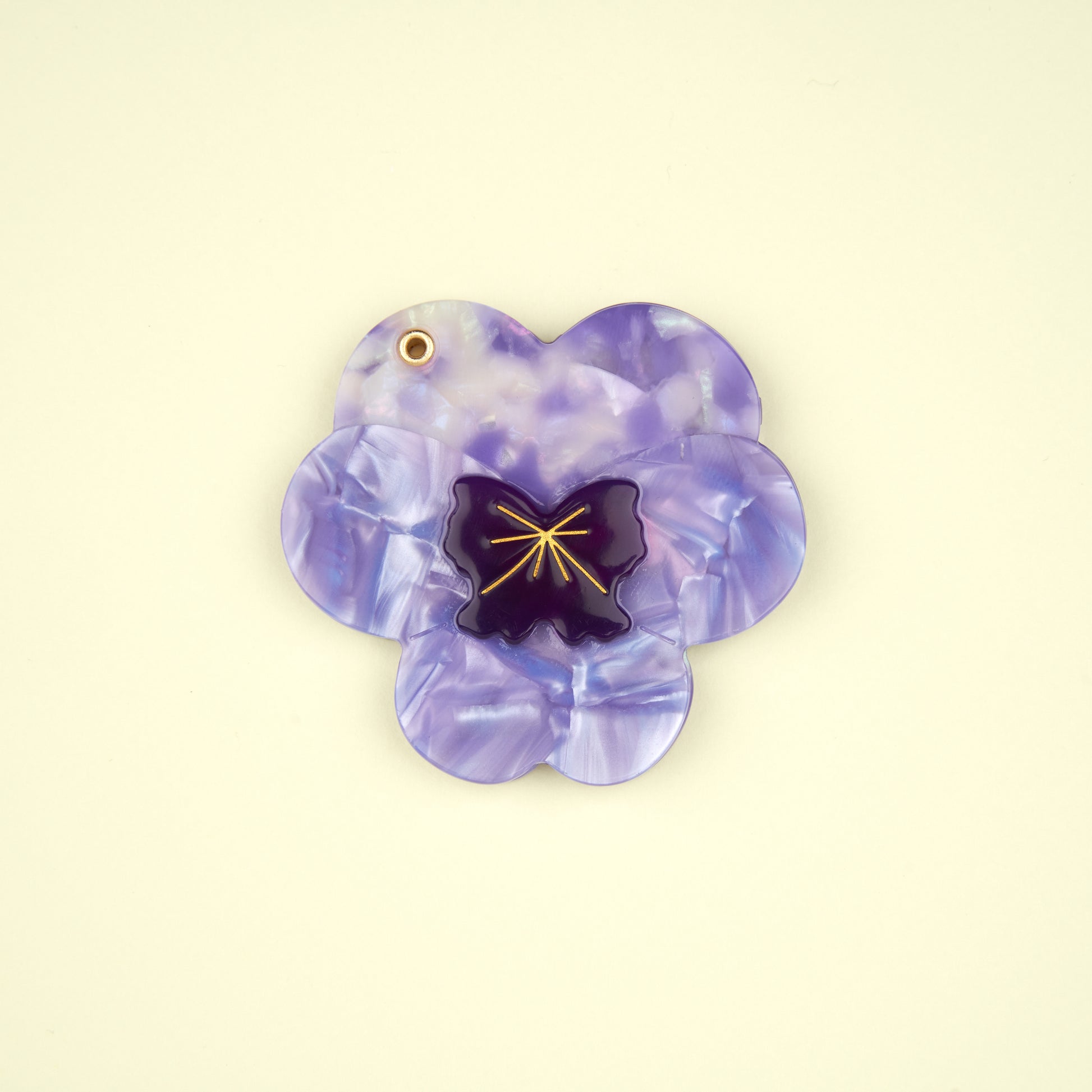 To check your teeth after lunch, you can discreetly take out this pocket mirror in the shape of a purple pansy. A beautiful flower in shades of mauve that slips easily into a handbag or a fanny pack.