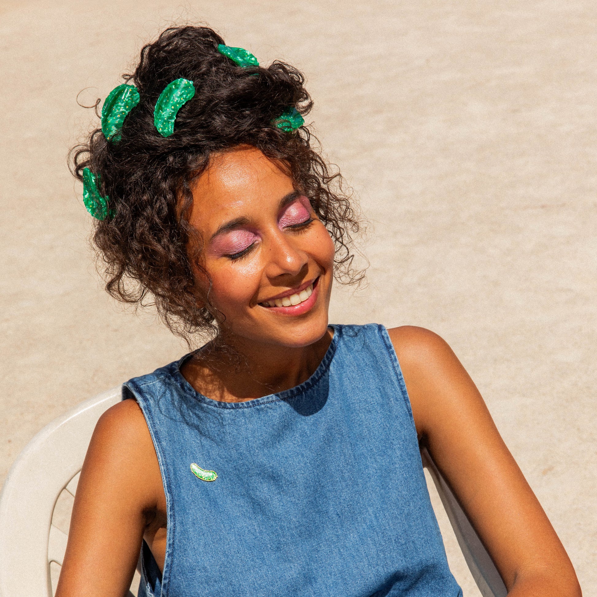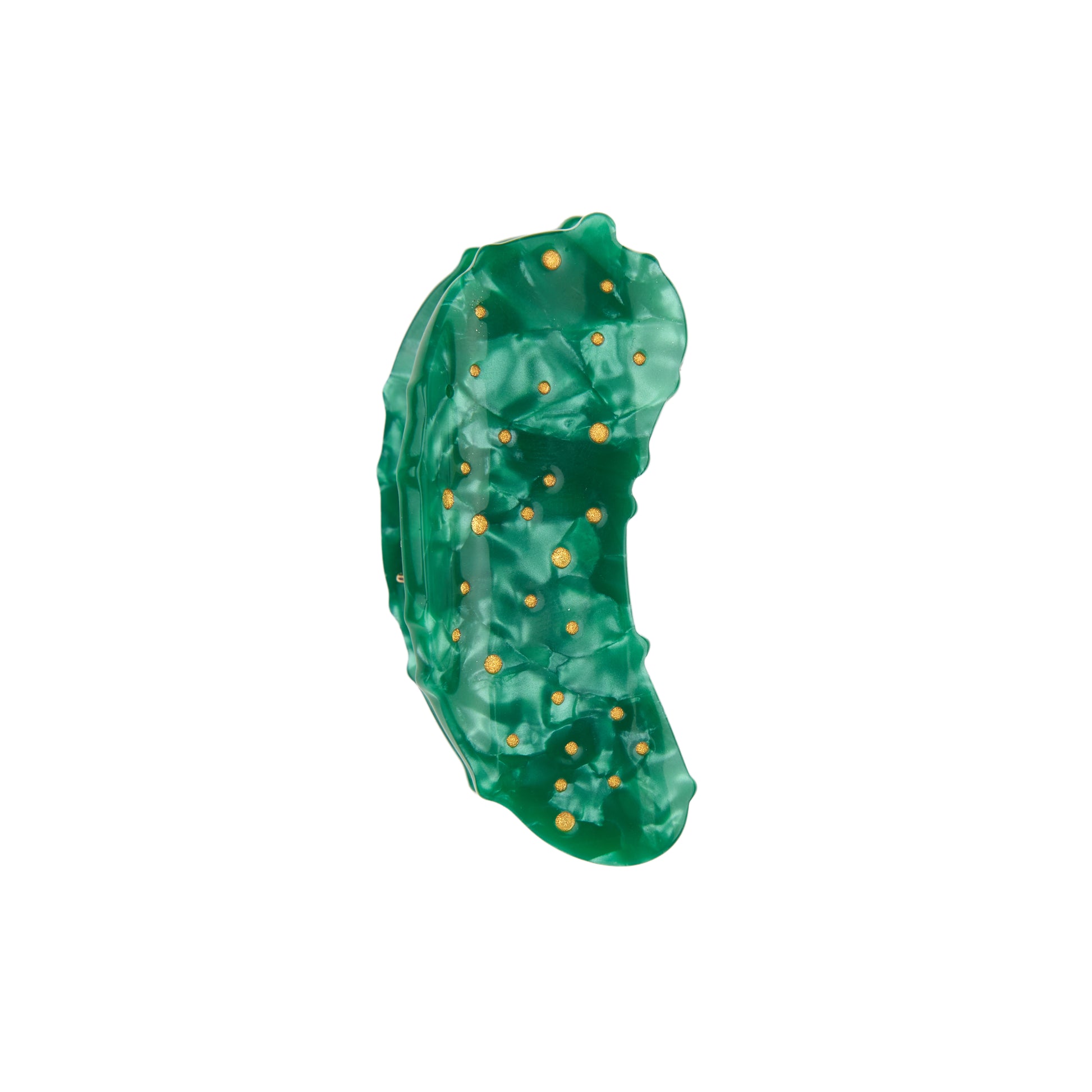 The ultimate must-have for picnics, sandwiches, and cheesy raclettes: the pickle, of course! We love it so much, we even wear it in our hair as a mini claw clip. A little emerald-green gem sprinkled with golden dots that looks almost good enough to eat.
