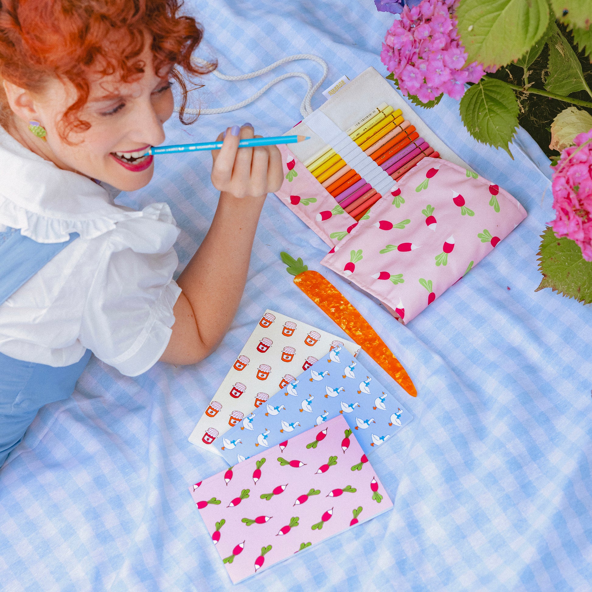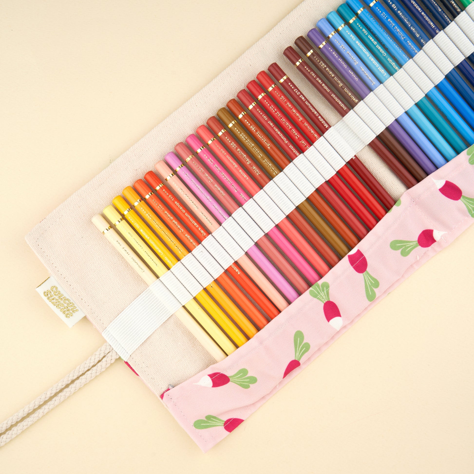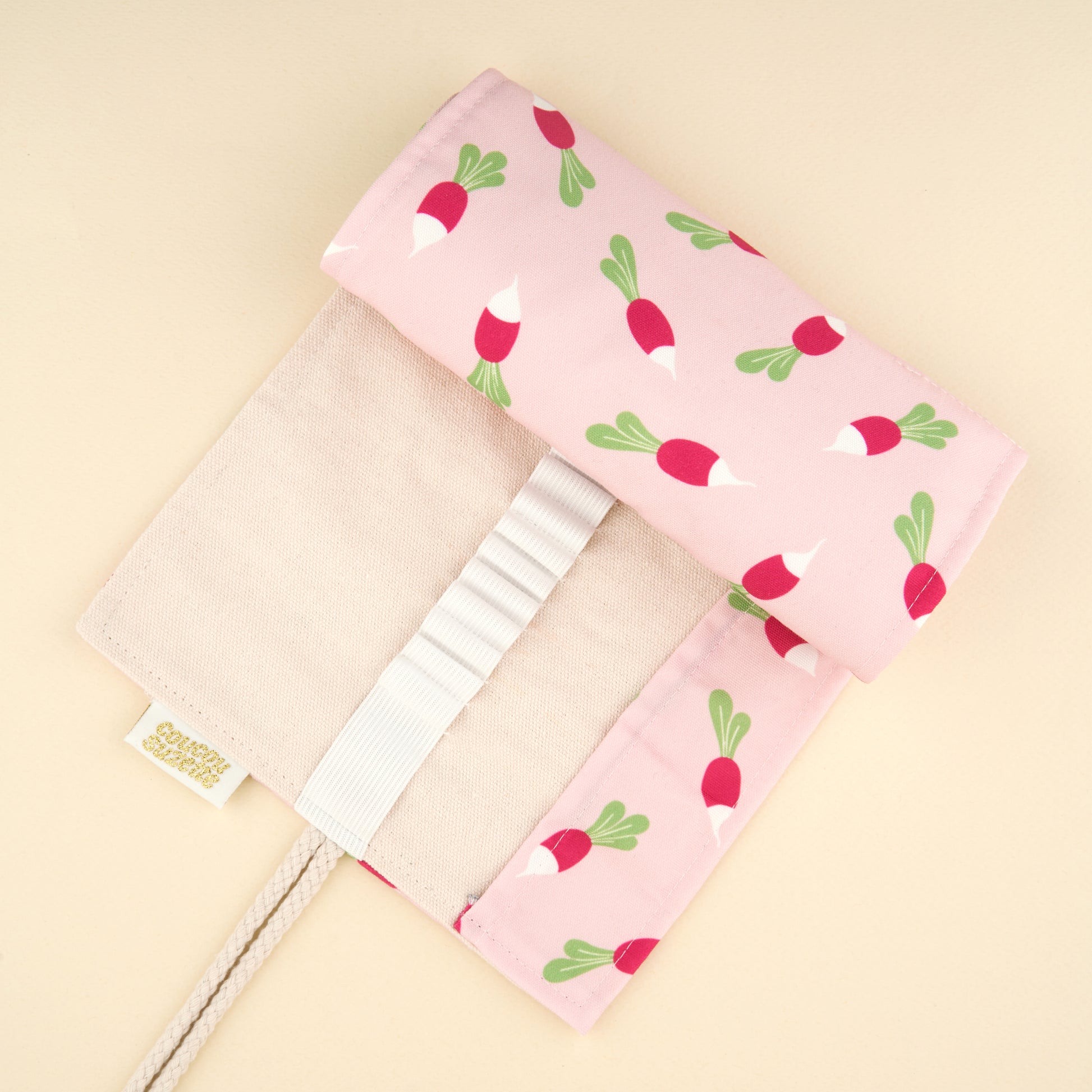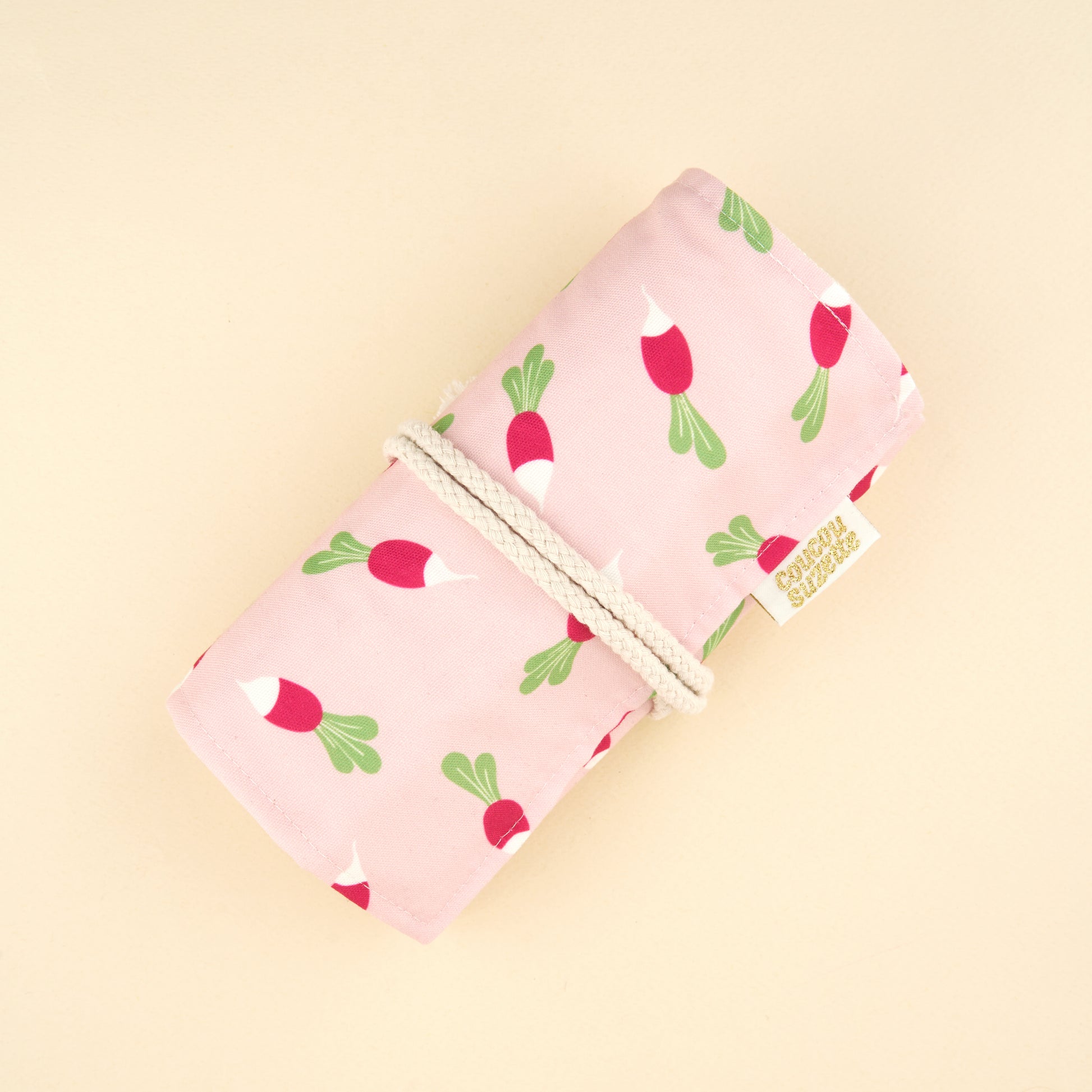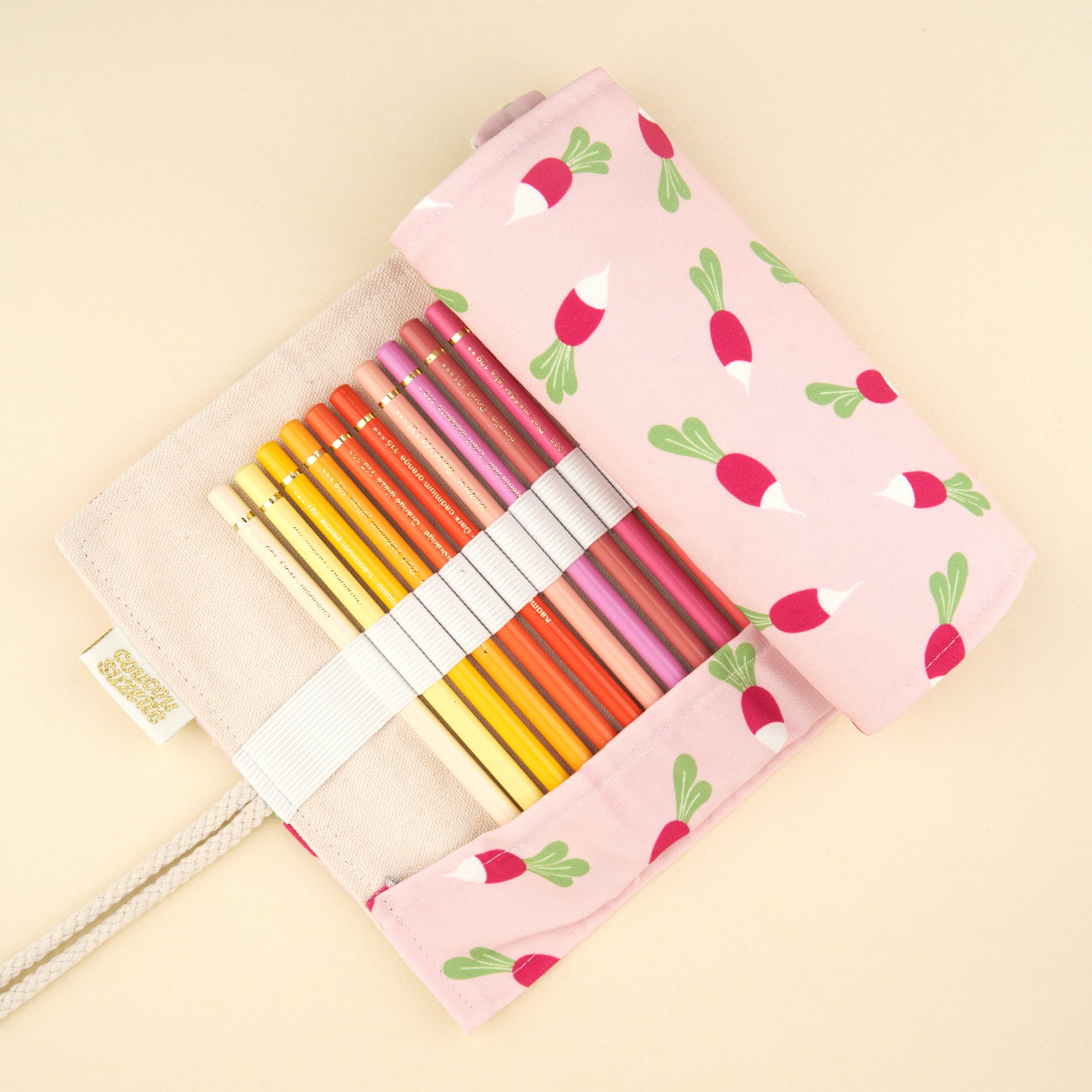 Oh, what a beauty is this? A radish pencil case, of course! This roll-up version is super practical for keeping all your tools close at hand, neatly organized and protected. It holds pencils, pens, markers, and brushes, and folds up in a snap to accompany you on all your artistic adventures.