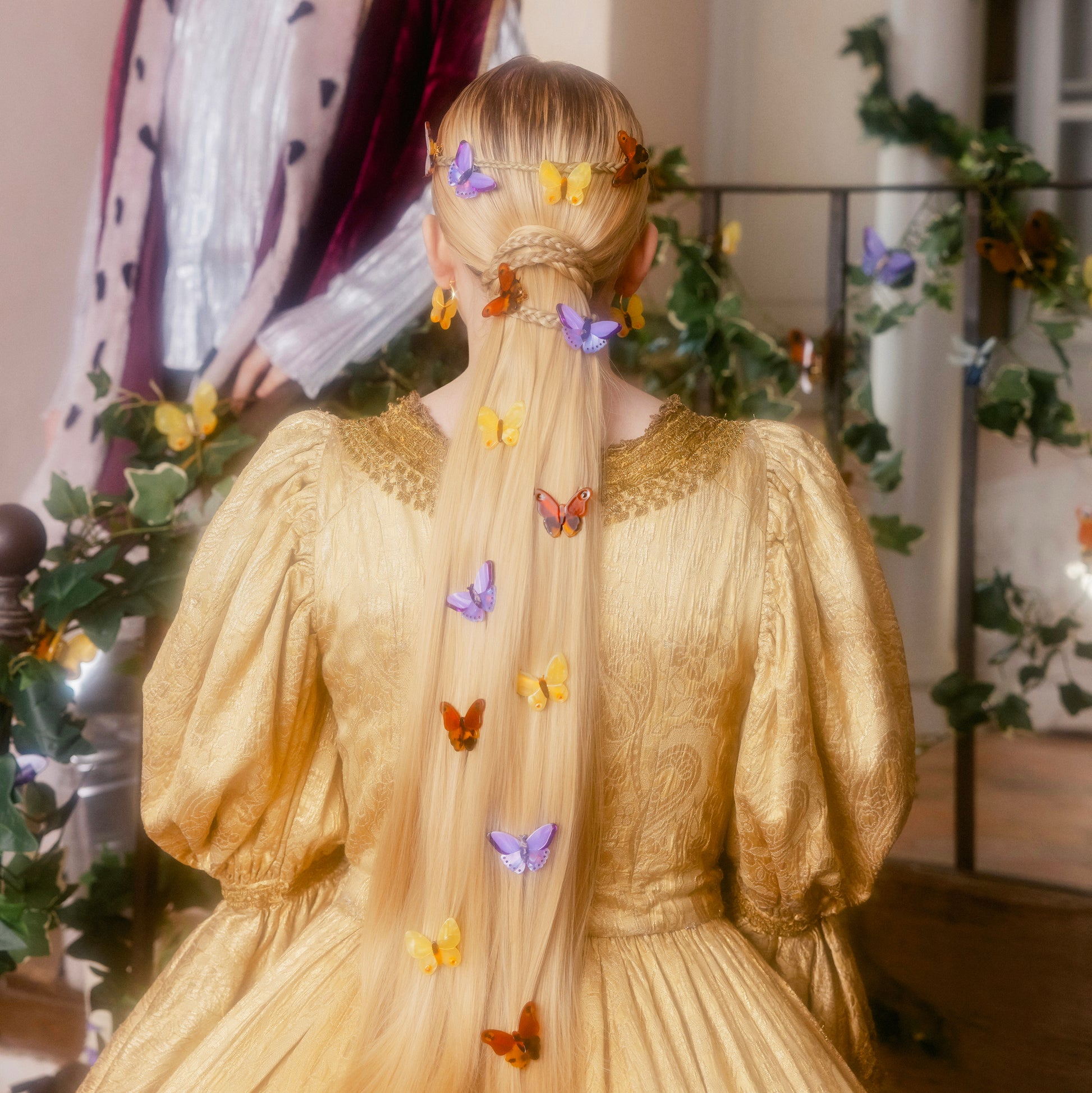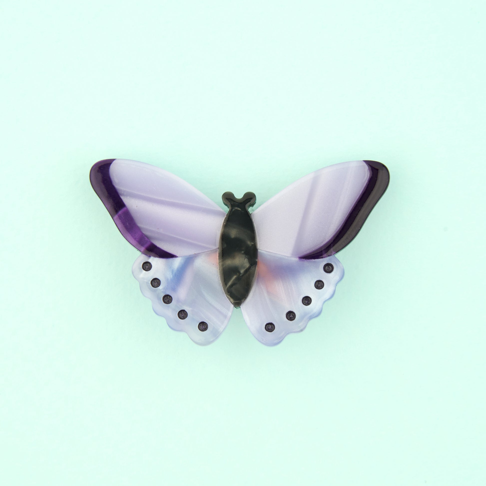 Une petite créature magique prête à se poser dans nos chevelures ! Cette barrette pour cheveux nous fait craquer avec ses différentes textures, ses nuances de violet, et ses formes plus vraies que nature. Portez-le avec ses potes bleus et jaunes pour des coiffures enchanteresses.