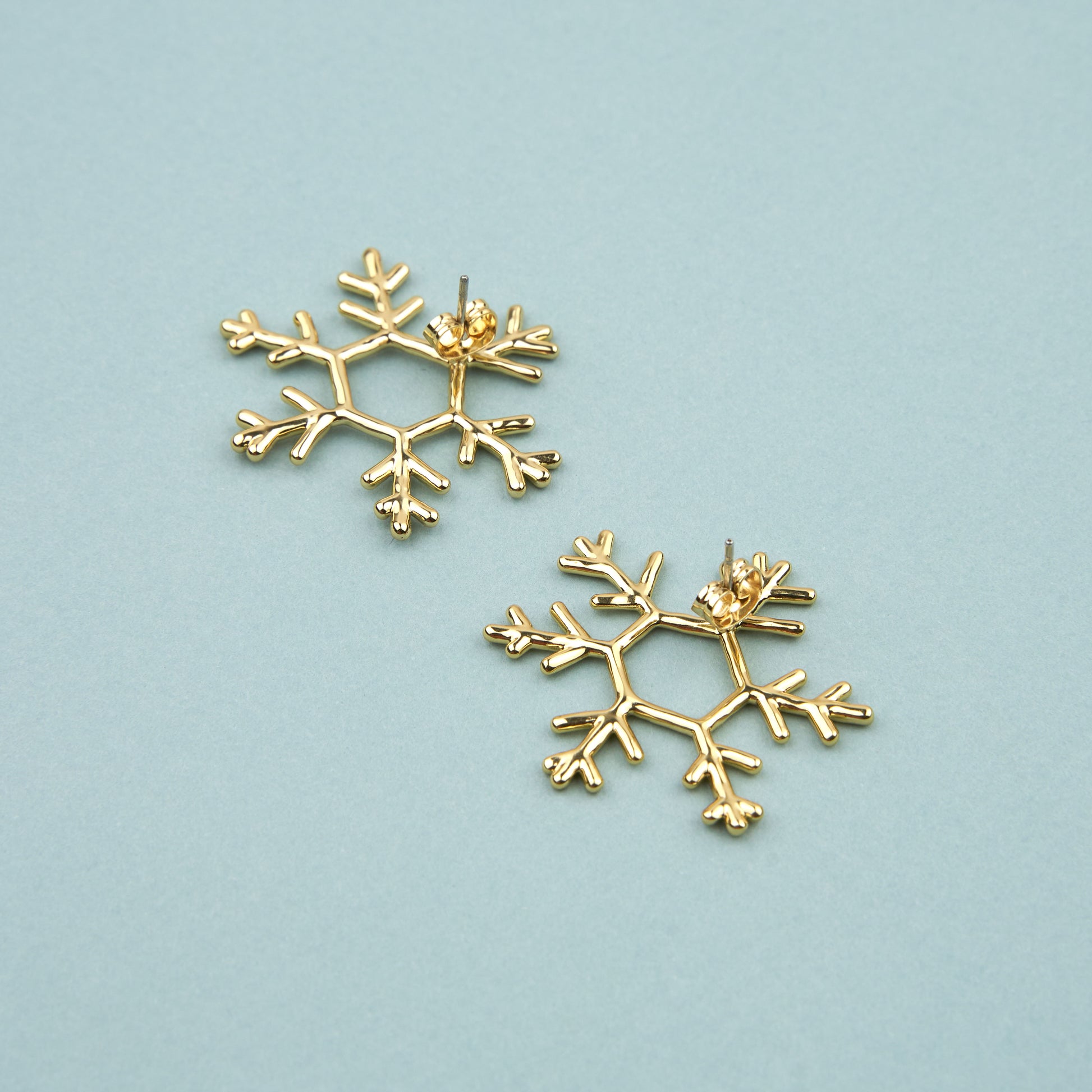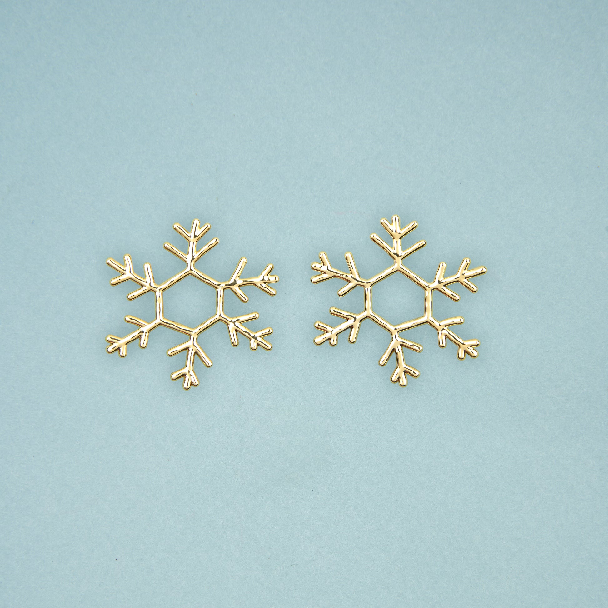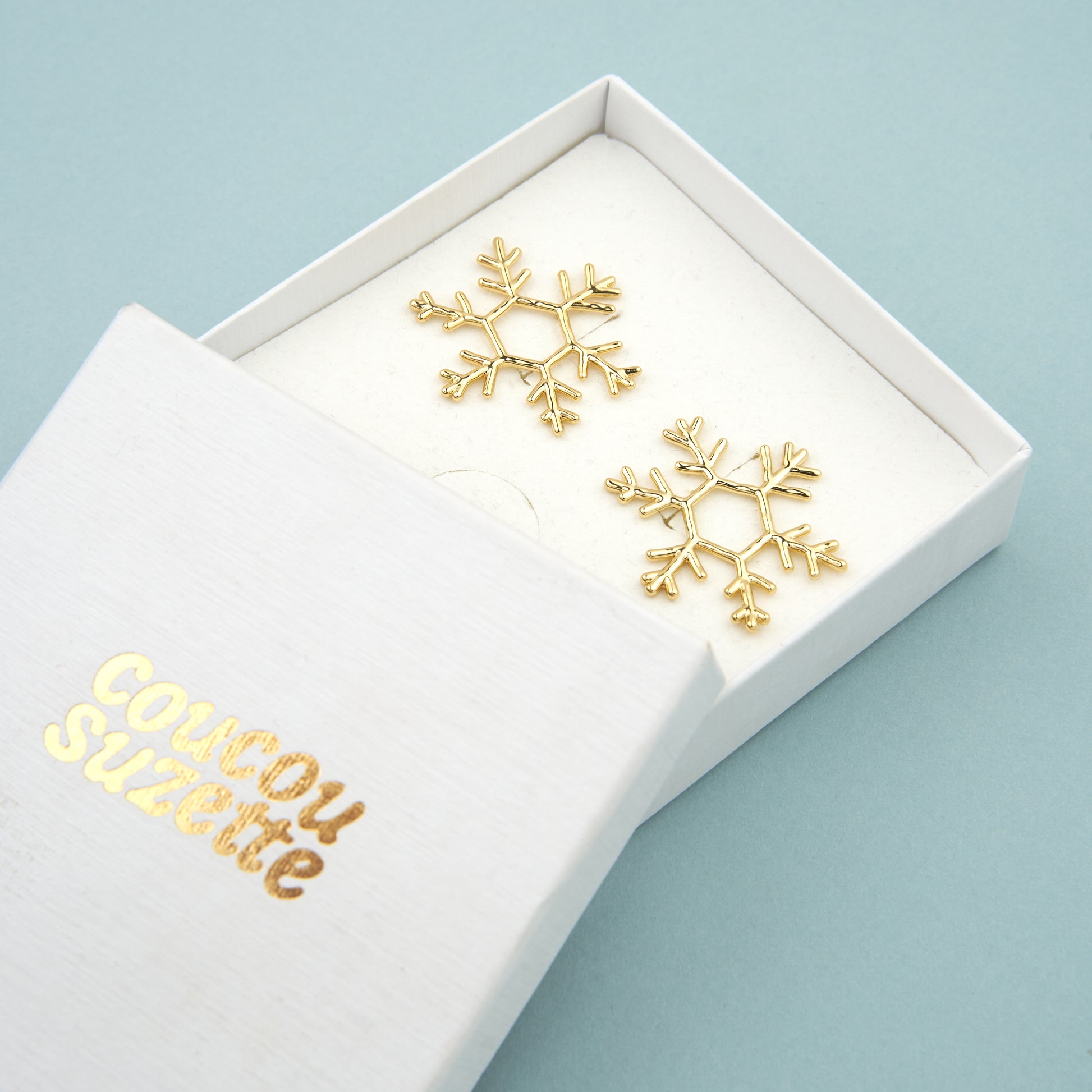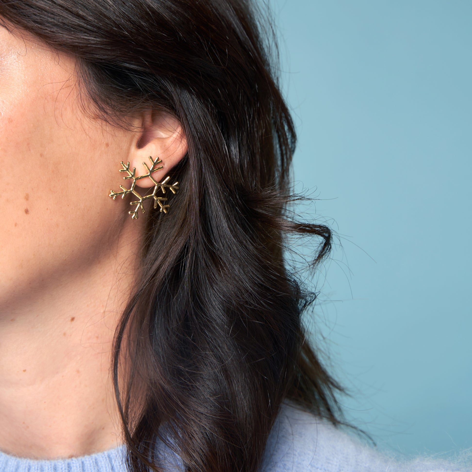 L’hiver est l’occasion de décorer toute notre maisonnée, mais aussi nous-même ! Hop, voilà de beaux flocons dorés à mettre à nos oreilles toute la saison. On adore leur forme imparfaite qui les rend à la fois élégantes et régressives.