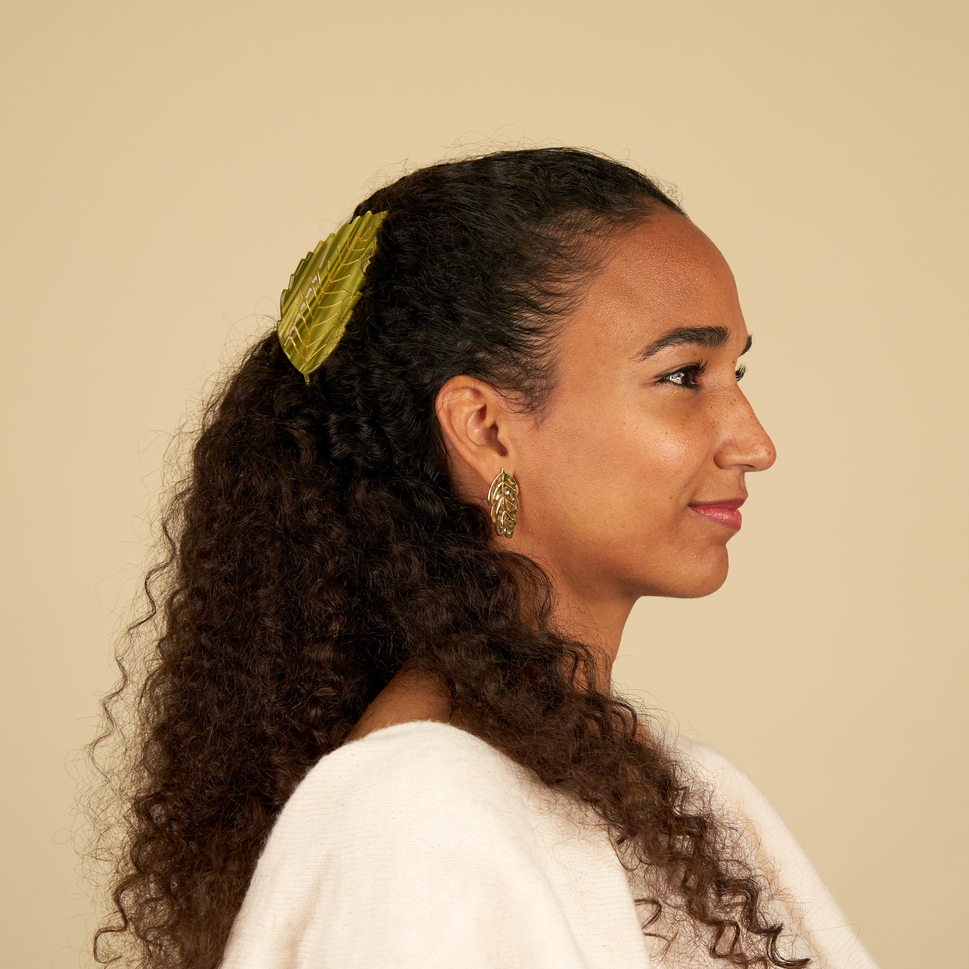 Découvrez aussi la barrette, la banane et les boucles d’oreilles assorties.
