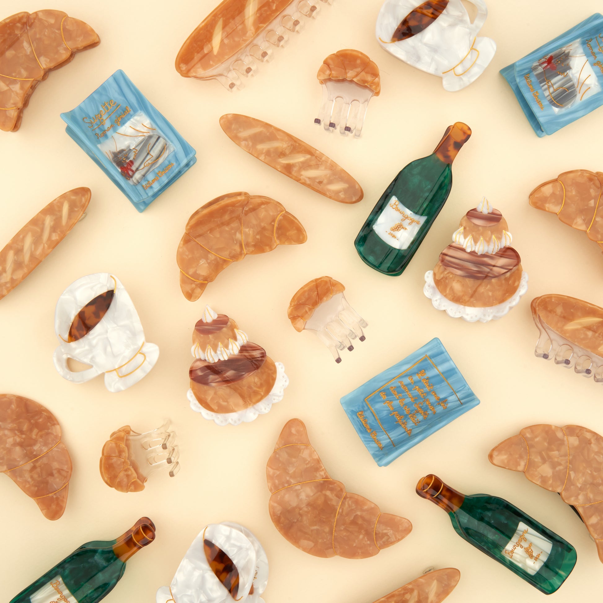Une pince à cheveux originale en forme de religieuse, cette divine petite pâtisserie tout en choux et en crème, qui nous fait directement retomber en enfance. On clipse cet accessoire gourmand effet nacré à nos chignons, pour une coiffure originale, romantique, et délicieusement régressive. Elle est tout aussi adorable sur l’anse de nos sacs qu’elle décore à merveille.