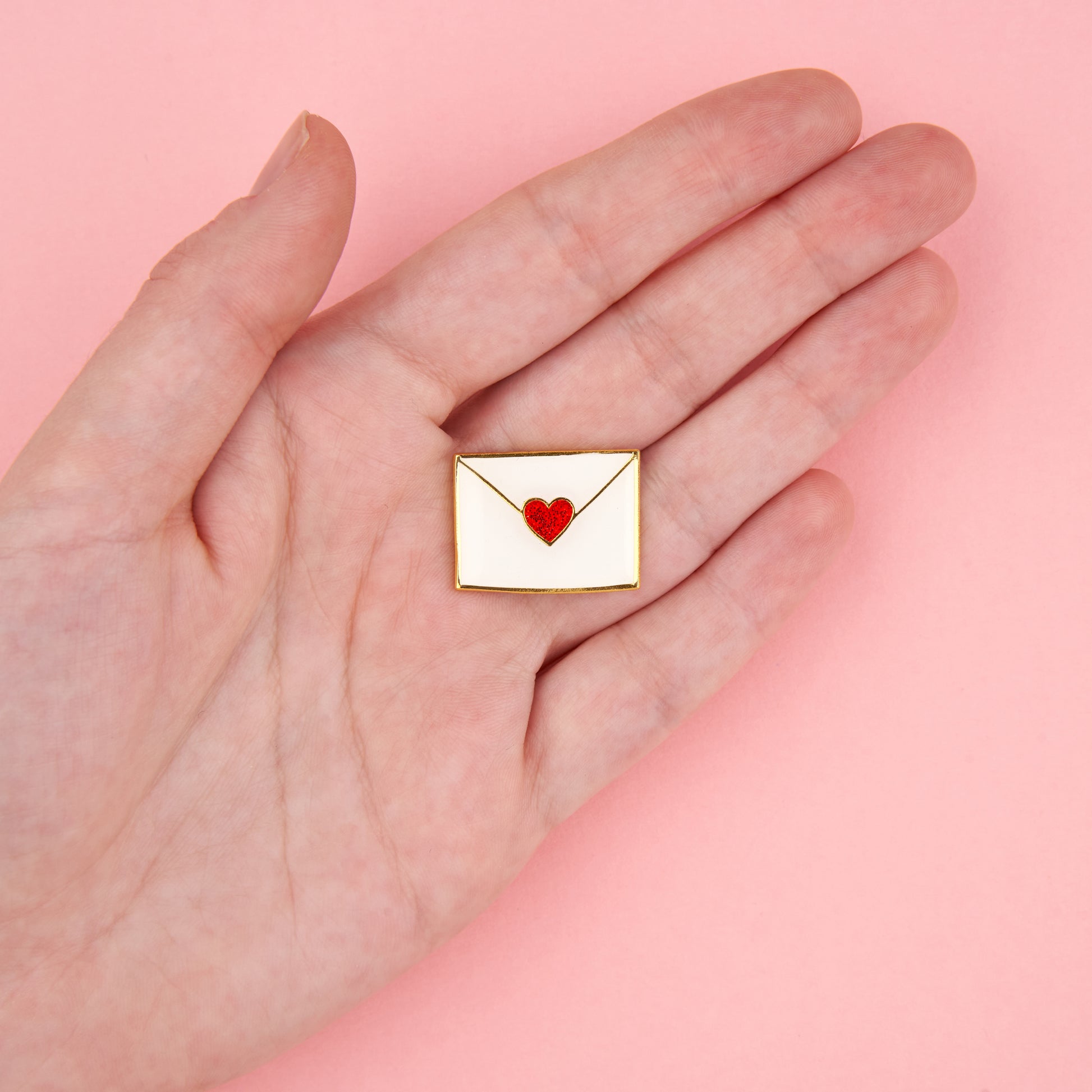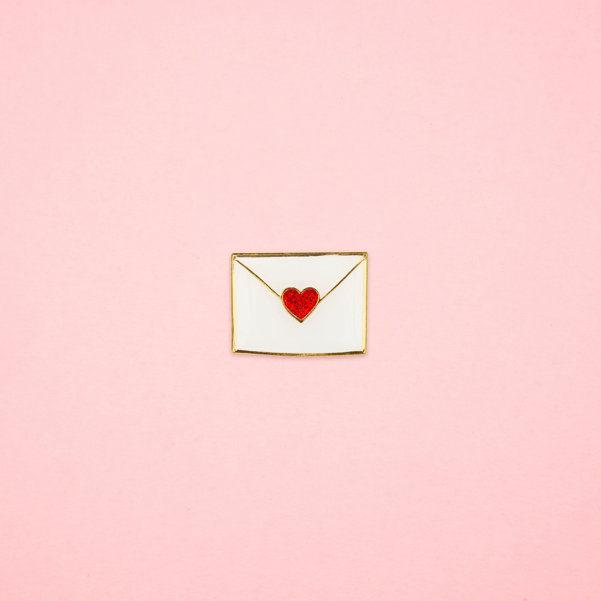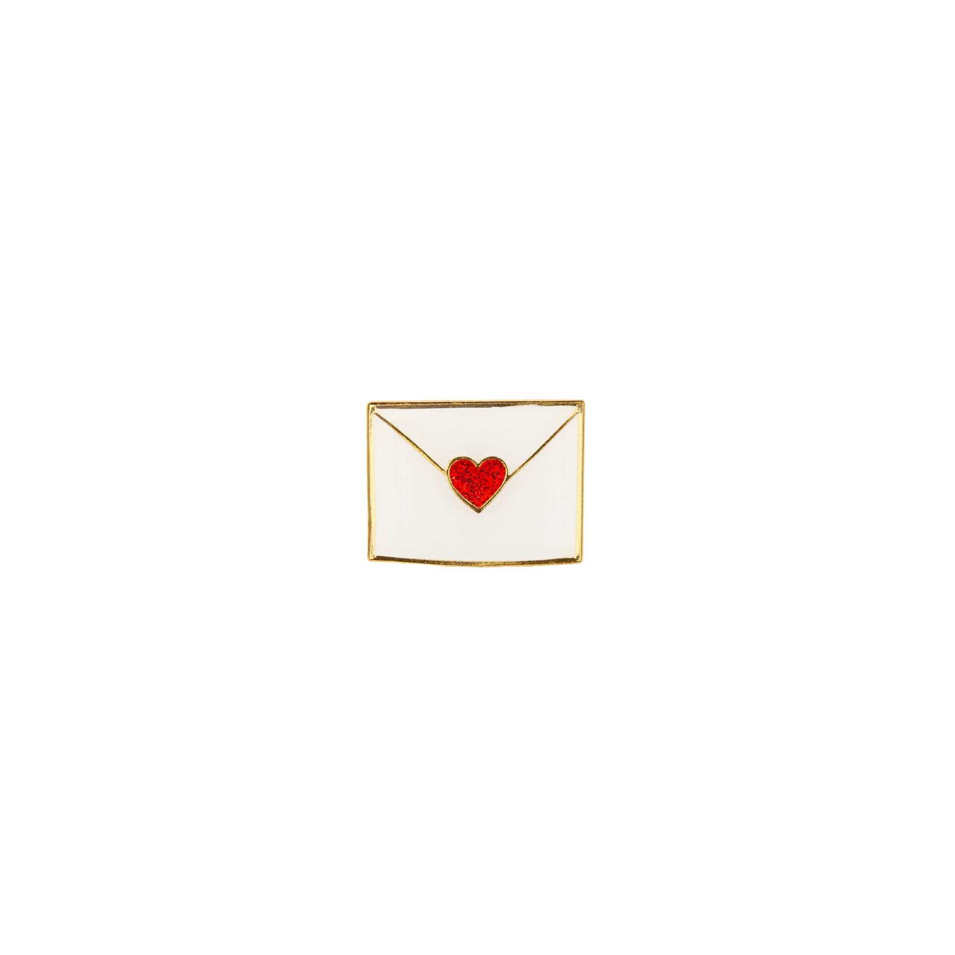 Un pin’s simple et efficace en forme d’enveloppe scellée par un cœur pailleté. On a hâte de voir ce qu’elle contient… Une lettre d’amour ? Une photo ? Un chèque ? On prend dans tous les cas.