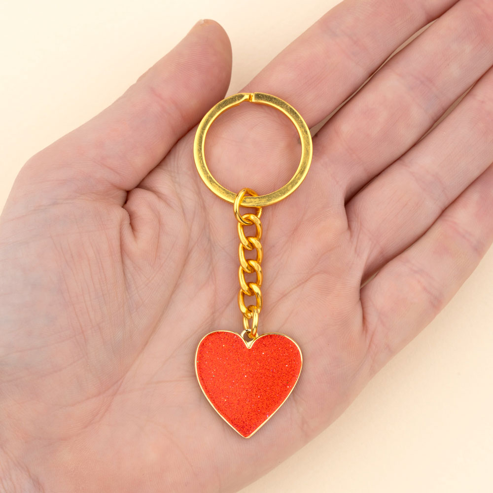 Un adorable porte-clé avec à son anneau doré un joli cœur rouge tout en paillettes. Impossible de perdre son trousseau avec ce bijou scintillant ! Le parfait petit cadeau pour déclarer sa flamme à l’heureux.se élu.e (ou simplement pour pimper ses clés).